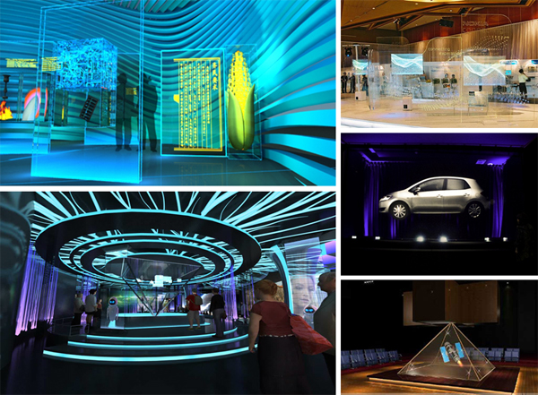 幻像利用多个光学镜面组合出一个倒金字塔形的半透明空间,,,将动态影像浮于该空间的中心部位,,,并可以让观众从四周任意位置观察到悬浮的立体影像,,,因而具有很强的视觉冲击。。。